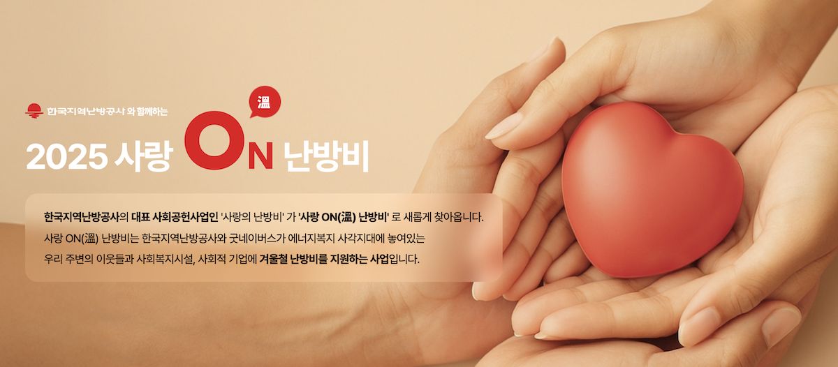 한국지역난방공사와 굿네이버스가 겨울철 난방비 부담으로 어려움을 겪는 가구를 위해 ‘2025 사랑온(溫) 난방비’ 지원 사업 신청을 오는 11월 23일까지 받는다. 이 사업은 소득 수준과 관계없이 실제 주거 환경의 긴급성을 중점적으로 평가해 개인 가구에 50만원을 지급하는 것이 특징으로, 정부 지원의 사각지대에 놓인 위기 가구에 실질적인 도움이 될 전망이다.