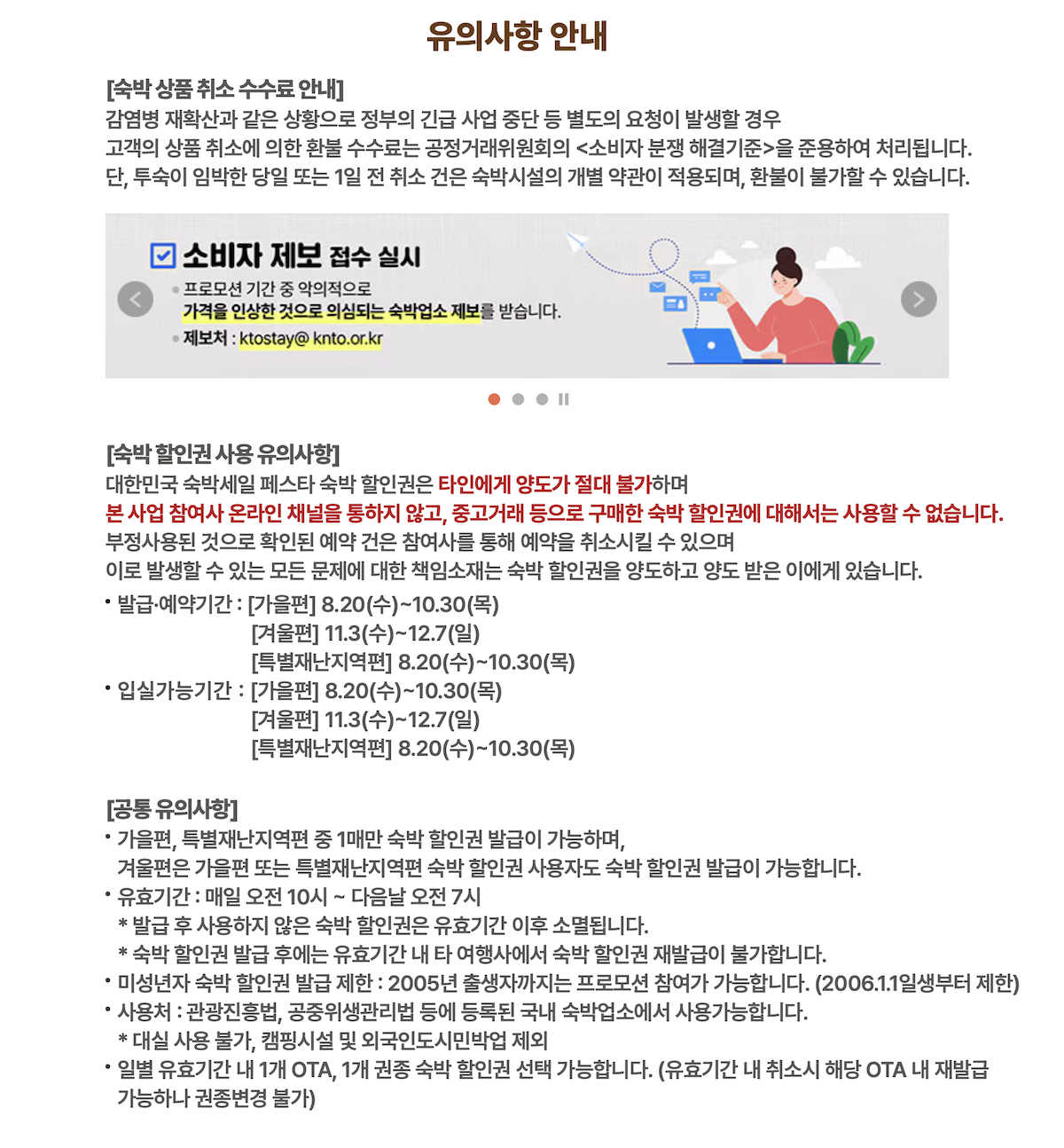11월 3일 ~ 12월 7일까지 비수도권 숙박 예약 시 최대 3만 원 할인해주는 ‘숙박세일페스타’ 진행