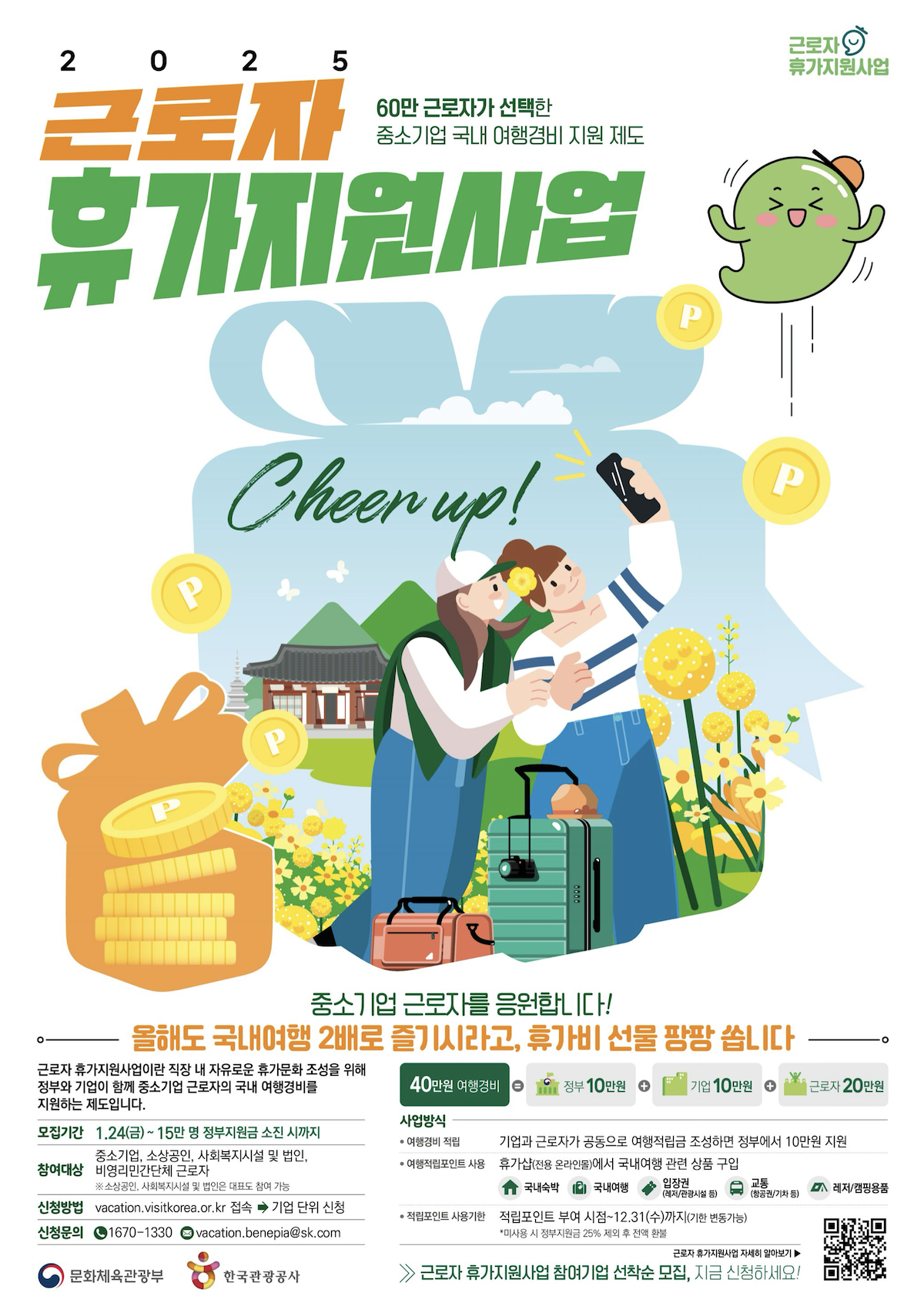 근로자 휴가지원사업은 문화체육관광부와 한국관광공사가 대기업에 비해 복지 여건이 열악한 중소기업 근로자들의 ‘휴가 있는 삶’을 보장하고, 국내 관광을 활성화하기 위해 2018년부터 시행해 온 대표적인 민관협력 복지 모델이다.