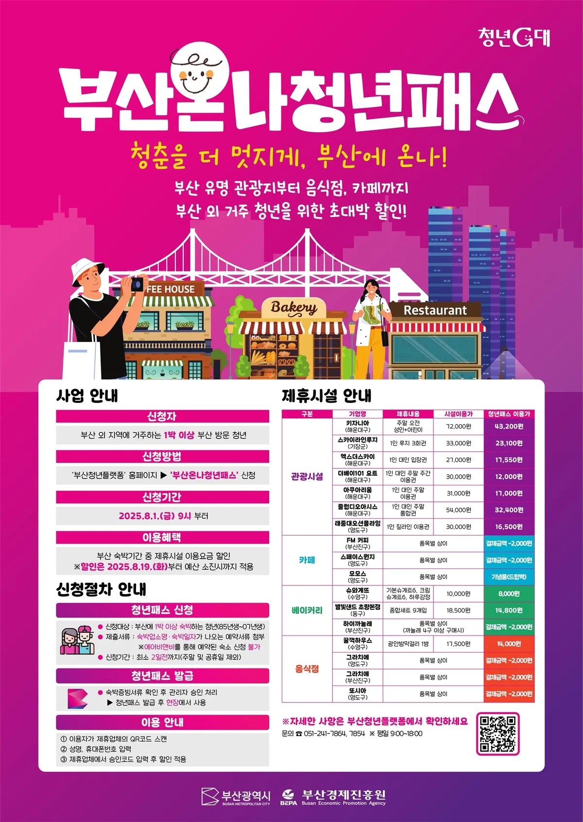 부산 외 지역 거주 18세~39세 청년 대상, 부산 주요 관광지 및 매장 등에서 최대 60% 할인 혜택 제공